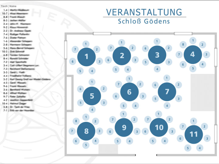 Der elektronische Sitzplan bietet ihnen die Flexibilität, die Platzzuordnung und Bestuhlung bis zum letzten Moment an die aktuellen Gegebenheiten anzupassen.
