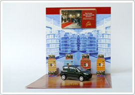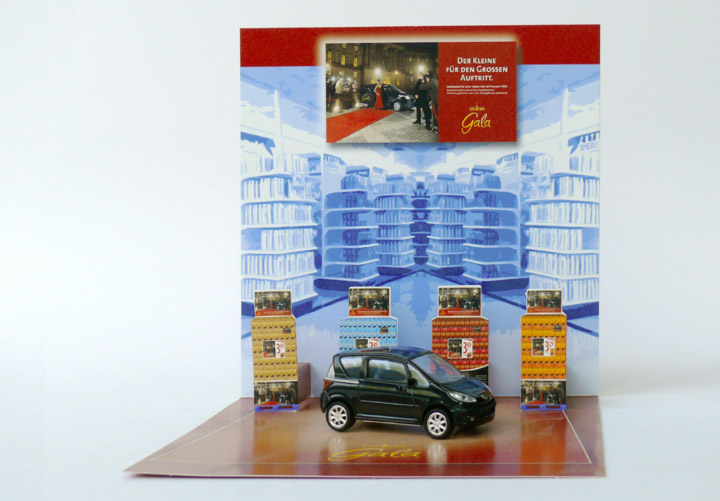 Als Hinweis auf eine neue Marketingaktion mit Gewinnspiel individuell entwickelte Pop-Up-Karte.